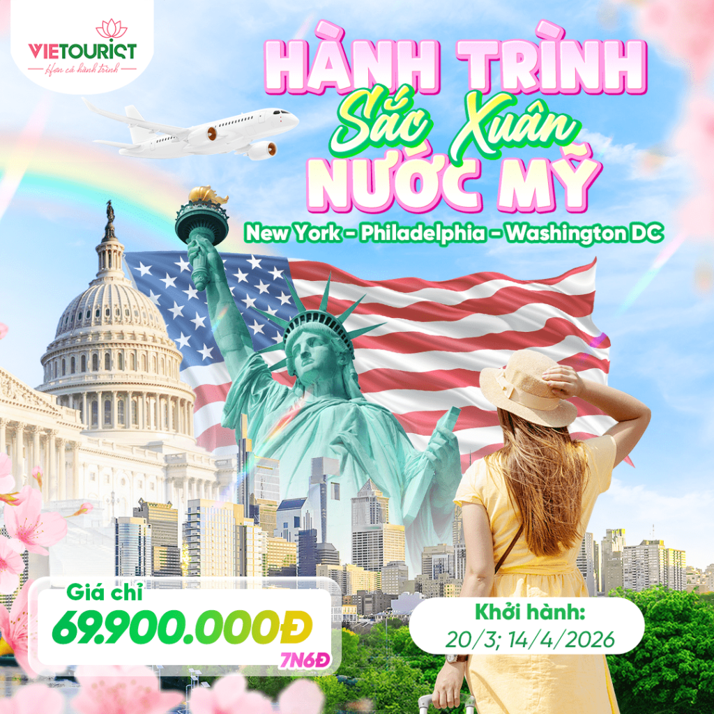Hướng dẫn viên công ty Vietourist đón Quý Khách tại sân bay Quốc tế và đáp chuyến bay đi Mỹ. Máy bay quá cảnh, đoàn làm thủ tục nối chuyến bay đi New York.